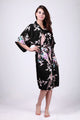 Stunning printed silk like robe with peacocks and flowers.  This kimono is the perfect bridesmaid or holiday wear robe.